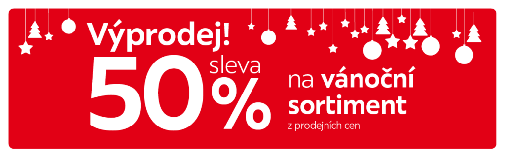 Sleva 50 % na adventní věnce a svíčky platí jen na výprodejem označené produkty v obchodním domě. Sleva platí z prodejních cen. Konečná cena zboží je uvedena na cenovce. Nevztahuje se na akční zboží, zboží propagované v naší aktuální reklamě, zboží označené Super cena. Platí jen na nově uskutečněné objednávky, po uplat-nění slevy nemohou být žádné další slevy poskytnuty. Pro uplatnění slevy kontak-tujte odborného poradce. Akce platí 27. 11. – 07. 12. 2025